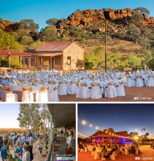 奧拉米納站農莊地處辛普森沙漠邊緣,距離愛麗斯泉僅30公里,獨享600英畝私有土地。私人木屋和營地被各類本地野生動植物、鳥類、步道和自然景觀所環繞宴會場地可容納500人就坐,設置在充滿小鎮電影布景情調,并以內陸浩瀚星空為幕布的紅色沙漠土地上。