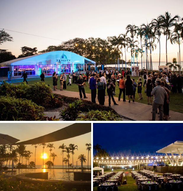 達爾文天空之城酒店充分利用優越的海濱地理條件,可為20至4,000人的團體提供多元化的會議和活動場地。酒店的天空之城草坪可舉行各類可容納2,500人的雞尾酒慶祝活動,標志性的明迪海灘日落,將成為活動最令人驚艷的幕布。酒店緊靠明迪海灘的濱海亭像是一個巨大華蓋,能夠舉辦600人的雞尾酒派對,同時,位于酒店三樓的大宴會廳還可容納440人,舉行各類雞尾酒會式的活動。